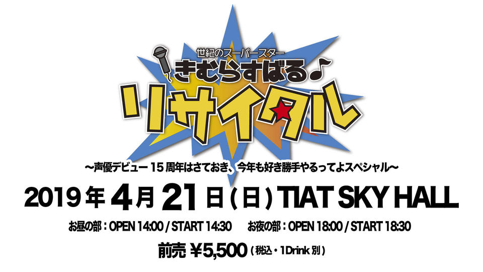 | 料金 | 前売券 ¥5,500(税込)ドリンク代別 当日券 未定 ※前売り券完売の場合、当日券は御座いません ドリンク:入場時にドリンク代600円が必要となります |